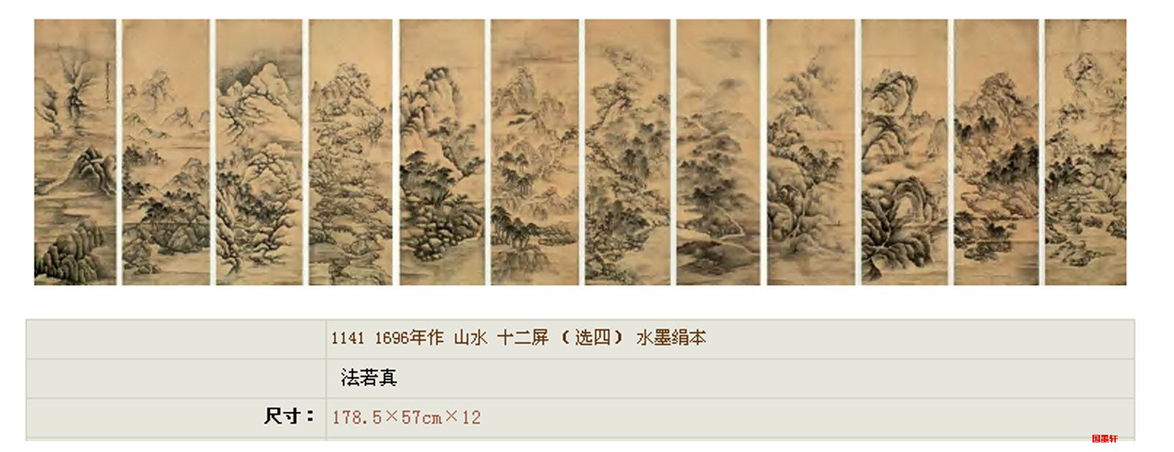 >> 法若真-山水十二屏水墨绢本