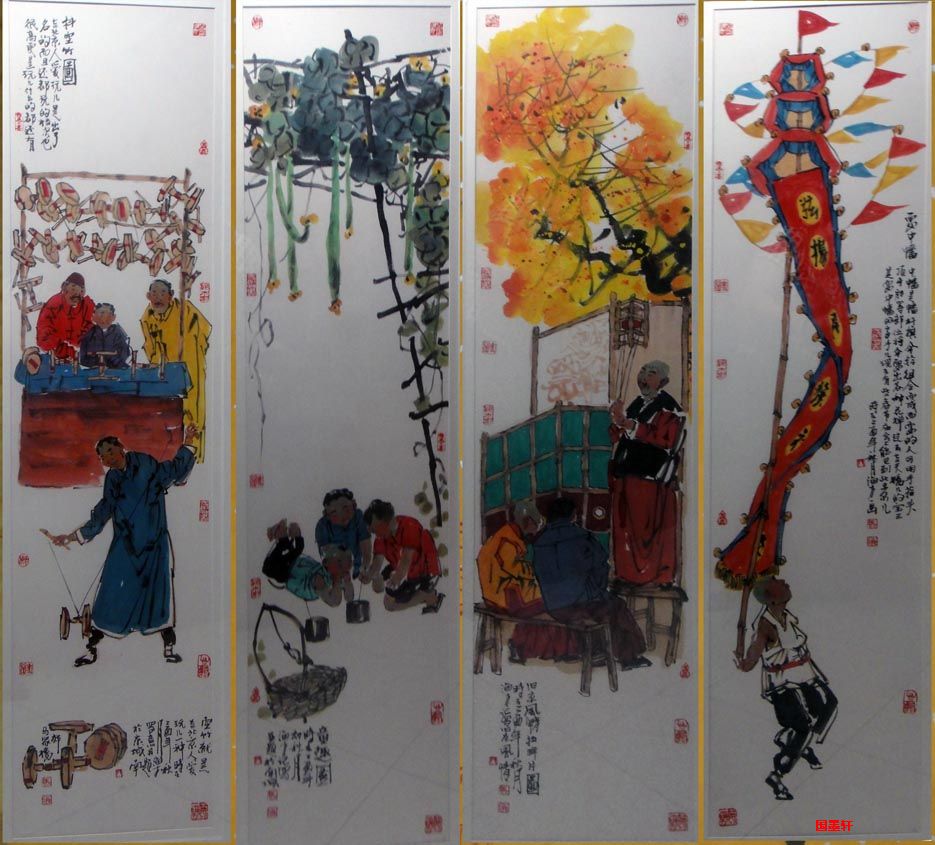 >> 马海方-人物四屏