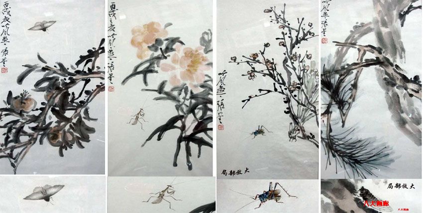 工笔草虫四条屏 |