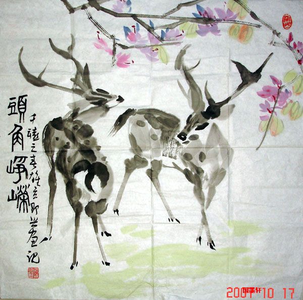 专长写意花鸟,兼及山水人物,尤以水墨画鹿享誉国内外。