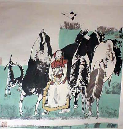 杨鹁:生于1960年,全国美术教育研究会会员,全国中学美术电视教材编委,山东省教材编审委员会委员,山东省九年义务教育中小学美术教材绘画类主编,山东省美协会员,济南市美协副主席,济南师范高级讲师,济南市专业技术拔尖人才。(盛世牛年挂历原作) |